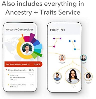 ANCESTRY AND TRAITS FEATURES: Know your personal story in a whole new way. Discover your ancestry composition and where in the world your DNA is from across 2000+ regions. Automatically start your Family Tree using your DNA. See what your DNA might have to say about your taste and smell preferences. Discover how DNA can affect your ability to match a musical pitch or whether you hate the sound of chewing.