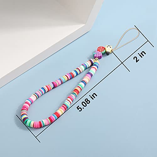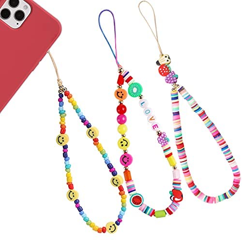 3PCS Cell Phone Charms TOOVREN Beaded Phone Charm Lanyard Wrist Strap for Women Girls Colorful Polymer Clay Fruit Smiley Beads Phone Chain String Cute Y2K Phone Accessories Camera Car Key Decorations