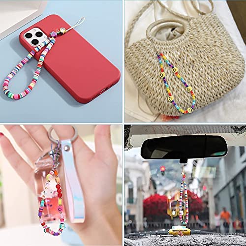 🥝Material of phone chain: The phone charm lanyard is made of artificial pearls + acrylic beads + polymer clay and is strung together with a strong nylon rope, cell phone strap is not easy to break. You will get three different styles, lengths, and colors of cell phone charm straps, and each string ting charm for phone can be used to match different clothing or mobile phone cases.