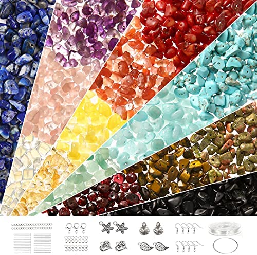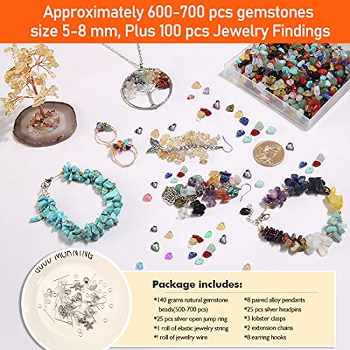 700 Pcs All in one Natural Chip Stone Beads with findings, Crystal Stone Beads for Jewelry Making, Irregular Gemstones Bulk Crystal Loose Rocks for Earrings Making, Necklace, Bracelet, DIY Art Crafts