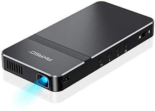 AKASO Mini Projector, Pocket-Sized DLP Portable Projector, 50 ANSI Lumens Video Projector, Support 1080P HDMI Input Built-in Rechargeable Battery Stereo Speakers and Remote Control Movie Projector