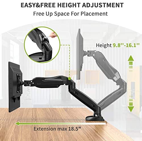 【HEIGHT ADJUSTABLE】You could raise and lower the screen height with just a couple fingers to adjust as you either sit or stand at your desk. More mounting height options so you would get the comfortable viewing height you are looking for