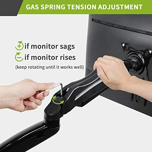 Our monitor mount enables lift and tilt functionality for ergonomic comfort and is designed to allow you to easily position your display for optimal productivity. Even better, this gas-spring arm lets you easily adjust the monitor to the most comfortable position, helping reduce strain on your neck, shoulders, and eyes. In brief, our gas-spring adjustable articulating monitor arm enables endless monitor adjustment and smooth movement in any direction for the perfect working position and most comfortable viewing angle.