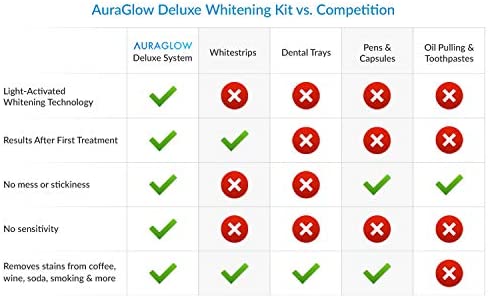 Let’s face it, store-bought teeth whitening strips and moldable trays are hard to use, messy and deliver poor results. Teeth whitening at the dentist is expensive and takes hours. With the AuraGlow Teeth Whitening Kit, you can get noticeable results after 1 treatment in just 30 minutes per day. Once you experience our teeth whitening kit, you’ll never go back to store-bought brands or unpleasant dentist visits.