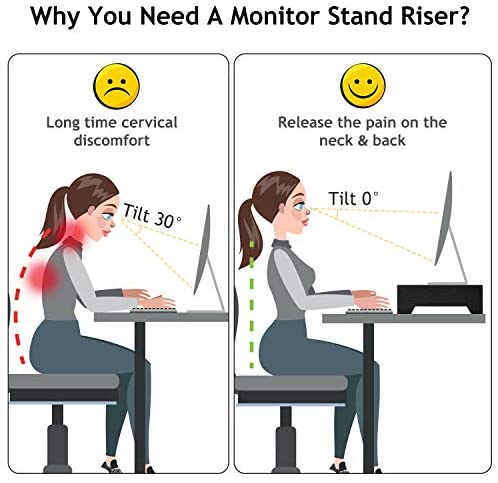Relieve Fatigue with Monitor Stand: Always look down your screen and strain your neck and back? It is time to elevate your computer screen up to a comfortable eye level with our ergonomic monitor stand, bringing you more comfortable visual experience,reducing the pain on the neck and back.