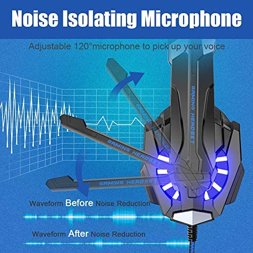 BENGOO G9000 Stereo Gaming Headset for PS4 PC Xbox One PS5 Controller, Noise Cancelling Over Ear Headphones with Mic, LED Light, Bass Surround, Soft Memory Earmuffs for Laptop Mac Nintendo NES Games