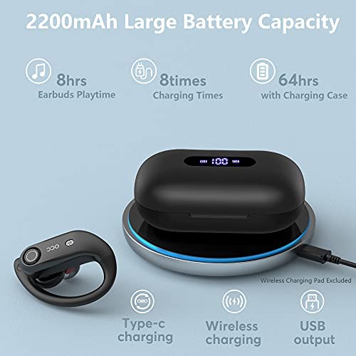 Bluetooth Headphones 4-Mics Call Noise Reduction 64Hrs IPX7 Waterproof Power Bank Occiam Wireless Earbuds Over Ear Earphones with 2200mAh Charging Case for Sports Running Workout Gaming