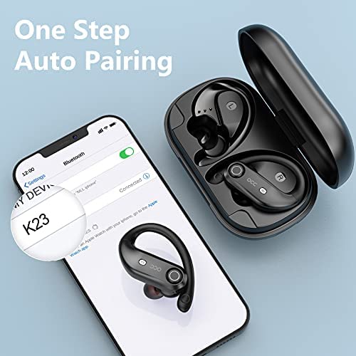 5. Auto Pairing and Easy Operation:Just remove sports wireless earbuds from charging case,they will power on and pair with each other automatically.Then enable the bluetooth of your phone to search “K23” to connect. After the first successful connection they’ll automatically connect to the last paired device. Each bluetooth earbud has one multi-functional press button which can make or receive call,play or pause,adjust volume and switch music.Easy and simple operation.