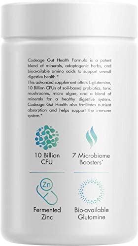 Codeage Gut Health Formula is an all-in-one featuring 10 billion CFU of a high-quality blend of live probiotics, a gut integrity blend, fermented zinc, tonic mushrooms, micro algae, and mineral blend. Our Prebiotics and Probiotics work together to support and allow better nutrient absorption in the digestive process. THE JOURNEY OF AN SBO PROBIOTIC: When probiotics are ingested, they travel all the way to the lower intestines which is where they come alive. SBOs are well-adapted to this environment. THE IMPORTANCE OF THE GUT: The gut is essential and is key for overall digestive health, healthy gut lining, digestive tract, constipation, bloating, gas, gut integrity, healthy nutrient absorption, the immune system, overall gut health and to manage irregularities so the body can stay gut-healthy and leverage healthy gut as a digestive support.* Your gut wall houses 70 percent of the cells that make up your immune system. Unlike other gut health formula supplement in powder, gummies, dr formulated, chewable, tablets, probiotics, prebiotics, probiotic foods, gut health, probiotic supplements, prebiotics and probiotics, gut health foods, natural probiotics, gut health diet, probiotics for adults, gut flora, vegan probiotics, restore gut health, probiotic vitamins, flora probiotic, best foods for gut health, good probiotics, gut health supplements, digestive probiotics, live probiotics, intestinal flora, probiotic capsules, daily probiotic, healthy gut diet, top probiotics our Supplement offers you a premium and smart supplement.*