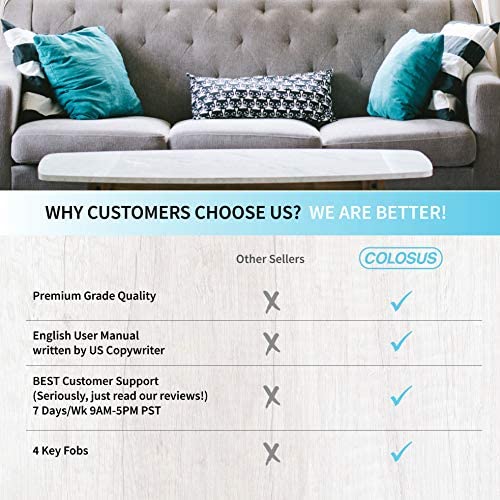 System Syncing – If you have multiple Colosus locks, you can sync your codes, key fobs and remote to work with all of the same lock models.