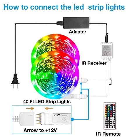 Daybetter Led Strip Lights 40ft, RGB Color Changing Led Strips with 44 Keys Remote Control for Room, Bedroom, Kitchen Decoration