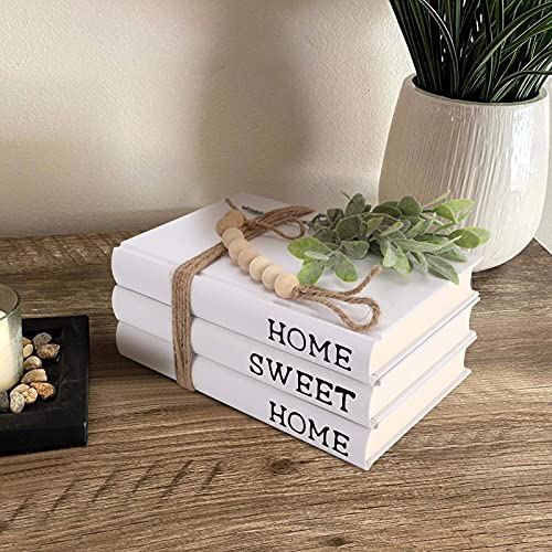 CREATIVE HARDCOVER BOOKS—-These 3 farmhouse books are so personnalized,” HOME SWEET HOME ” the words are clearly displayed on the side of the books.The stack comes with twine and beads,and realistic faux sprig of leaves brings fresh natural feeling,ideal for Modern Home Décor,Wedding,Display Prop,Staging,Instant Library,Interior Design,Sketch Book or Art Journal.