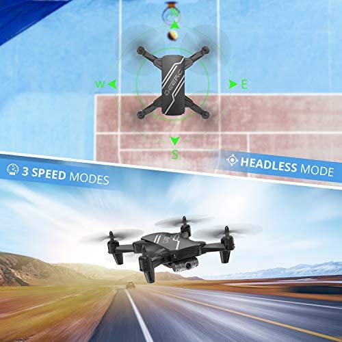 DEERC D20 Mini Drone for Kids with 720P HD FPV Camera Remote Control Toys Gifts for Boys Girls with Altitude Hold, Headless Mode, One Key Start Speed Adjustment, 3D Flips 2 Batteries, Black