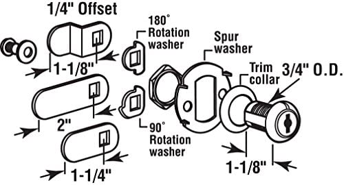 COMES COMPLETE – This drawer and cabinet lock comes complete with 3 cams, a trim collar, 2 reversible rotation washers, 2 keys and fasteners. Keyed Different, Yale Y-11 keyway.