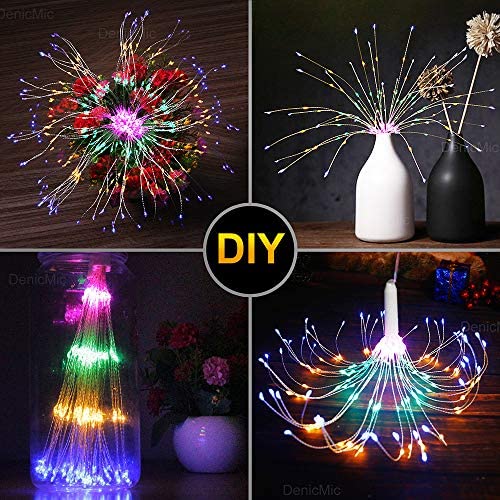 DenicMic Firework Lights Starburst Lights 200 LED Copper Wire Battery Operated Hanging Sphere Lights with Remote, 8 Modes Stars Fairy Ceiling Decorations for Patio Party Wedding Christmas (2 Pack)