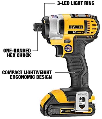 DCS885 Cordless Impact Driver of the drill/impact driver combo kit has a compact design (5.55-inch front to back) to fit into tight areas
