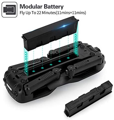 Modular Battery&22mins Flight Time:Comes with 2 pcs modular batteries which is convenient to install. The drone’s flight time is extended by the extra battery so the total flight time with 2 batteries will be 22 minutes.