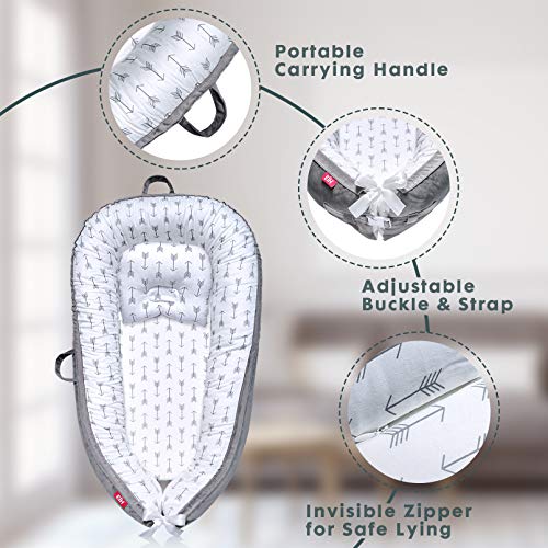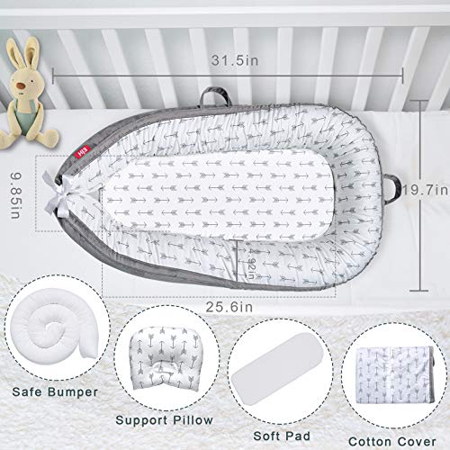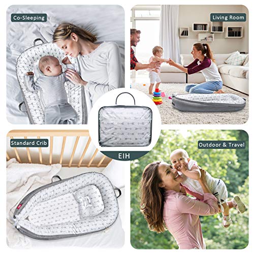 EIH Baby Nest,Baby Lounger Co-Sleeping Baby Bassinet for Bed Newborn Lounger 100% Soft Cotton Breathable and Portable Crib with Pillow Perfect for Traveling and Napping (Arrow)
