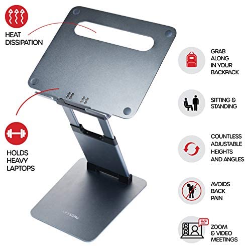 ERGONOMIC STAND! If You are having issues with your back then you are at the right place, This ergonomic laptop stand is compatible and will work perfectly for all MacBook and laptops of all sizes from 10 inch tablets to 17 inch laptops including MacBook Air, Pro, 10, 13, 15, 15.6 and 17 inch laptops. You can use it either while sitting or standing. With the cool design, it even keeps your laptop cool so that it doesn’t overheat. EASILY ADJUSTABLE! This LIFELONG Laptop stand was designed as an amazing adjustable computer stand that can easily be adjusted for any zoom conference meeting, watching videos, gaming or can even be used for cooking as a cookbook stand. it’s just an amazing gifted notebook stand. This computer stand was specially designed so that you don’t have to use a standing desk in addition to your regular desk which will keep your office cluttered. STANDING DESK! This Computer stand can be used as a portable standing desk and can be adjusted accordingly, the top base rises until 20 inches from the floor of the stand and the arm extends up to 13 inches, in addition the arm has 20 different arm lengths to be adjusted according to your needs, with this portable stand you can just use it when you decide to and easily pack it away when you sit down. GRAB ALONG IN YOUR BACKPACK! This portable laptop stand can be taken around in your backpack from working at home to working in your office and it will solve all your posture issues. This laptop stand is a must have home office supplies and office accessories for men and women. UNIVERSAL FOR ALL! This Laptop stand standing desk can be used as a stand up desk, dj stand, podium stand, vertical laptop stand, laptop and desk riser, computer stand for laptop, adjustable laptop stand, portable desk, Macbook stand, Laptop holder, Macbook pro stand, adjustable standing desk, work from home workplace, laptop desk stand, desktop stand, uplift desk for notebook, laptop riser, pulpit laptop stand and much more….