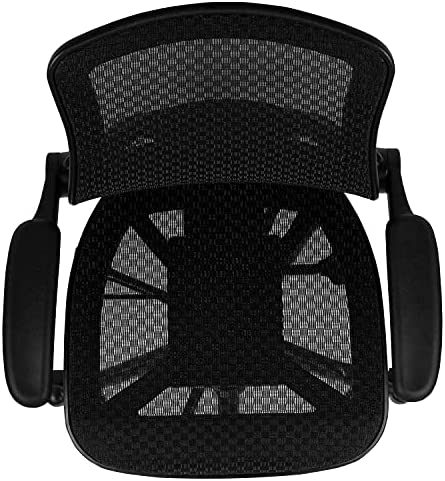 [_Our chair conforms to ANSI/BIFMA standard X5.1-17_] Transparent black mesh back and seat, mid-back design, flip-up padded arms