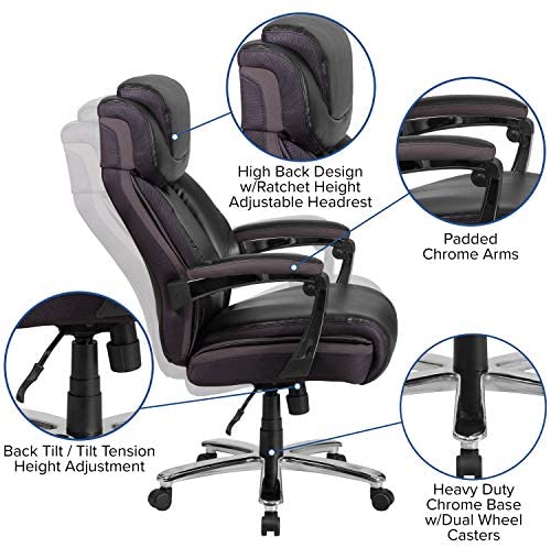 Flash Furniture HERCULES Series Big & Tall 500 lb. Rated Black LeatherSoft Executive Swivel Ergonomic Office Chair with Adjustable Headrest