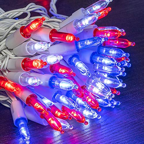 FUNPENY 200 LED Outdoor Independence Day Lights, 66 FT Mini String Light , Waterproof Patriotic Tree Lights for Indoor Outdoor Patio Garden July Fourth Party Wedding Decoration
