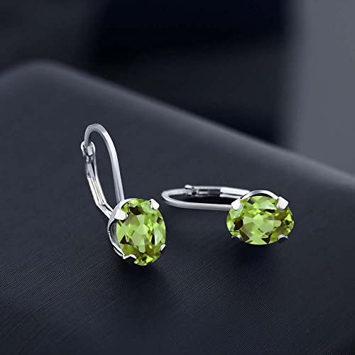 Gem Stone King 925 Sterling Silver Green Peridot Women’s Earrings (2.66 Cttw Gemstone Birthstone Oval 8X6MM)