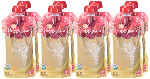 Happy Baby Clearly Crafted Organic Baby Food Stage 2, Bananas Raspberries & Oats, 4 Ounce