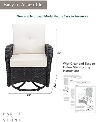 Harlie & Stone Outdoor Swivel Rocker Patio Chairs Set of 2 and Matching Side Table – 3 Piece Wicker Patio Bistro Set with Premium Fabric Cushions