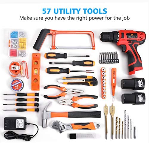 HOH-Tech Cordless Drill Driver Tool Kit, Power Tools Combo Kit 108Pcs Household Power Tools Drill Set with 16.8V Home Cordless Repair Kit Tool Set