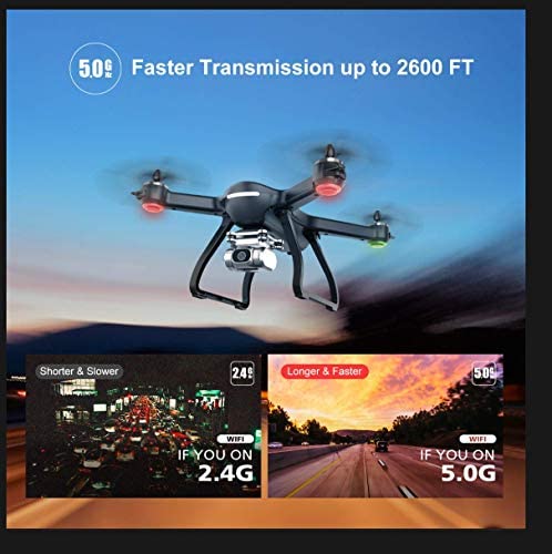 4K FHD 90°Adjustable Camera with 5G Transmission: The upgraded camera (3840*2160P stored in TF card) with 110°FOV (field of view) lens gives a panoramic view for recording your unforgettable moment. 5G transmission ensures fast and high-quality FPV real time video from 1640-2600FT away- ideals for selfie. Edit and share your new creations to social media with your drone app directly.