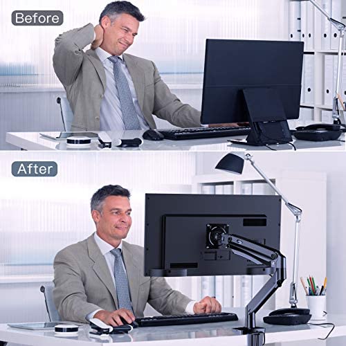 Upgrade Single Monitor Mount – Use hidden adjustment hole to avoid daily dust, not only beautiful design but also easy to clean fit 17″-35″ LCD/LED monitor, weight up to 26.4lbs