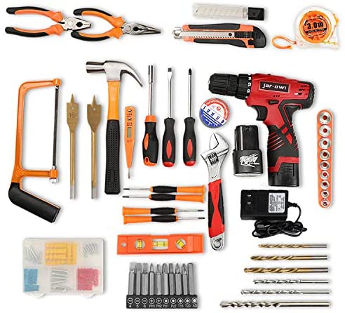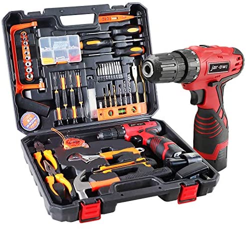 jar-owl 60-Piece Tool Set with Drill, Power Tool Set with 16.8V Lithium Cordless Drill Driver for Home Repair Tool Kit