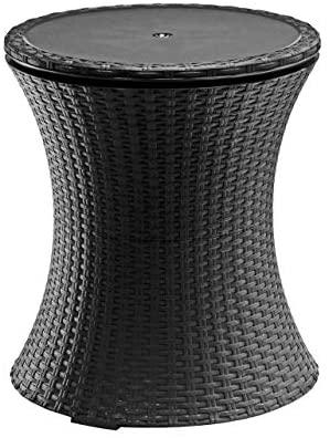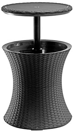 Want to convert your Cool Bar from cooler/coffee table into a party-perfect cocktail table? Simply lift the lid and twist the locking ring. Voila! Cold drinks, Cool Bar, instant party! And to keep the party going, the Cool Bar’s 7. 5 gallon cooler can keep drinks chilled for more than 12 hours! The top rises smoothly from 22. 5 inches to 32. 5 inches in overall height and locks into place to prevent it from falling when topped with party provisions. And when you are done, simply remove the built in drainage plug for easy cleanup. When you’re ready to change the mood, the top of the cooler can be twists back down into a sleek cocktail or coffee table. As friends gather around the Cool Bar, you can feel confident that this contemporary piece adds just the right element of class and style. So whether you want a stylish accent table or a functional party accessory, you can have it all — with the Cool Bar from Keter. While the compact design will easily fit into the layout of even the smallest deck, patio, or yard space, if you have larger outdoor living areas, you can place one on either side of each sofa, love seat, or chair to use as end tables. It would then be easy enough for you to pull out all of the Cool Bars and stock them with beverages and ice whenever you decide to host a large gathering. Features & Benefits: Dimensions: 19. 5D x 33. 2H in. Lid extends upwards into table 10 in. above rim Sturdy engineered legs for optimal support 7. 5 Gallon drink storage capacity to handle up to 40 12 oz. cans with ice Built in drainage plug makes cleanup a breeze Beverage cooler keeps drinks ice cold for up to 12 hours Sleek contemporary design blends with a wide variety of indoor or outdoor patio decor Table top locks in place for easy access to drinks Weather-resistant – can be left outside without worrying about rust, decay and other weather-related damage Easy to assemble, easy to maintain and easy to use Perfect centerpiece for your outdoor gatherings or summertime parties
