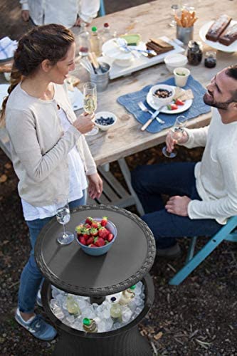 Keter Pacific Cool Bar Outdoor Patio Furniture and Hot Tub Side Table with 7.5 Gallon Beer and Wine Cooler, Dark Grey