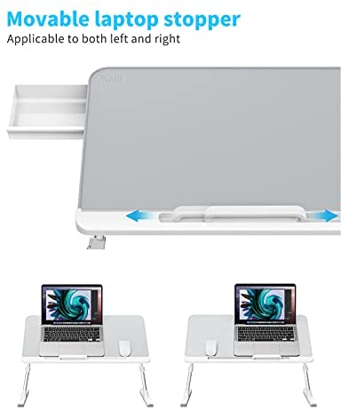 SAIJI Adjustable Laptop Bed Table with Storage Drawer for Eating, Working, Writing, Gaming, Drawing. Foldable and movable desk legs easy to storage under the bed or sofa, perfect for use as bed tray and floor eating table.