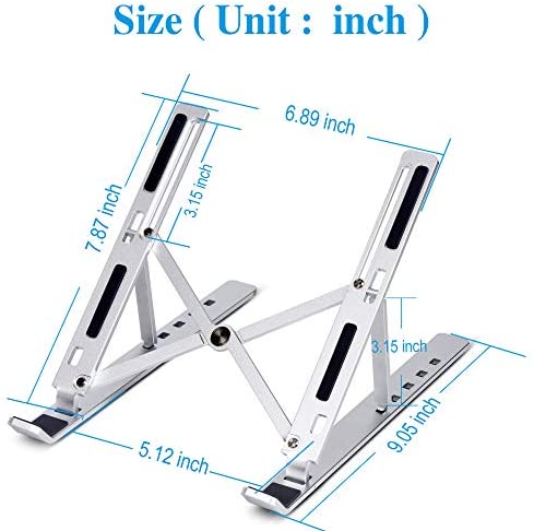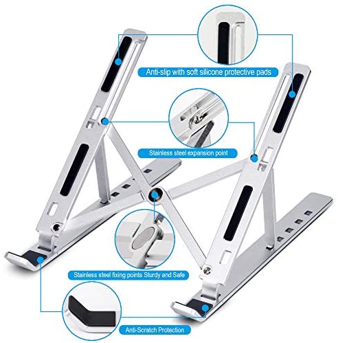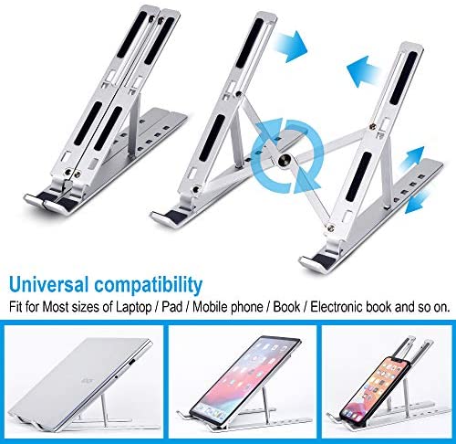 Laptop Stand for Desk, Arae Adjustable Ergonomic Portable Aluminum Laptop Holder, Foldable Computer Stand 5 Angles Anti-Slip Laptop Riser Compatible with 9-15.6 inch Laptops, Silver