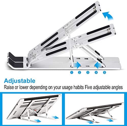 [Adjustable Angle] – This laptop stand offers 5 angle adjustments, there will always be an angle for your comfort, helps to reduce eye strain, shoulder pain, back pain.