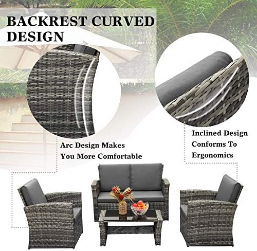 LayinSun 4 Piece Outdoor Patio Furniture Sets, Wicker Conversation Sets, Grey Rattan Sofa Chair with Cushion for Backyard Lawn Garden