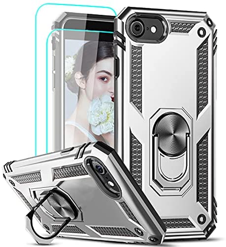 LeYi Compatible for iPhone SE 2020 Case with [2Pack] Tempered Glass Screen Protector, [Military-Grade] Protective Phone Case with Magnetic Ring Kickstand for iPhone SE 2nd Generation (2020), Silver