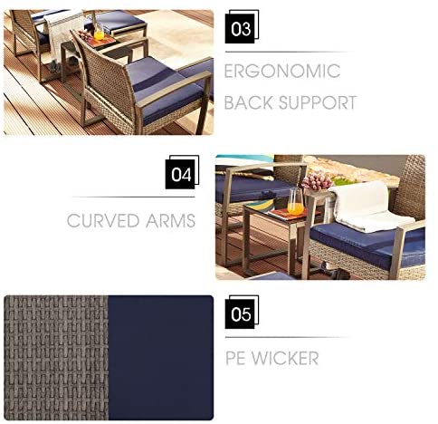 UPGRADED COMFORT – The outdoor furniture set comes with thick cushioned ottomans which give you additional seating or a place to prop up your feet, offering upgraded comfort. You can enjoy leisure time with your friends for optimal comfort and relaxation.