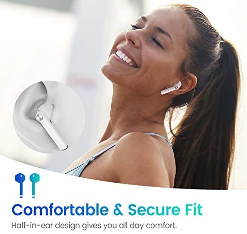 Secure Fit & One-key Control: Adopting ergonomic half-in-ear design, and weighting only 3.5g of each earbud, which brings you stable and comfortable fitting experience. With physical button on the wireless headphones, you can switch songs freely, answer/reject calls and activate Siri, perfect for workout, home office and running etc.