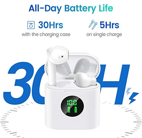 Power Display & 30H Playtime: Features with smart LED digital display, you can easily know the battery consumption on both bluetooth earphones and the charging case so you can master the best time to charge it. These Bluetooth earphones can last 5 hours of playtime on single charge and provides extra 25 hours playtime with charging case. Full music around you all-day long.