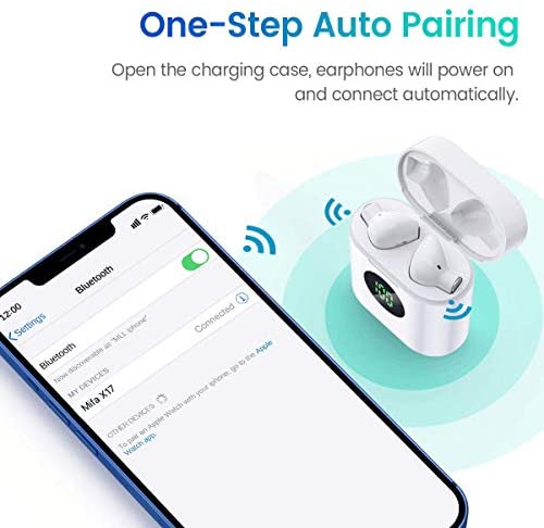 Effortless pairing & Bluetooth 5.0: Opening the charging case lid, these wireless Bluetooth earbuds will automatically power on and enter pairing mode, then you can connect them to your device without taking them out of the charging case. Also the advanced Bluetooth 5.0 technology ensure a stable connectivity and high speed transmission, low signal loss when on phone call and listen to music.