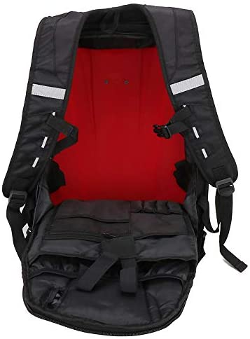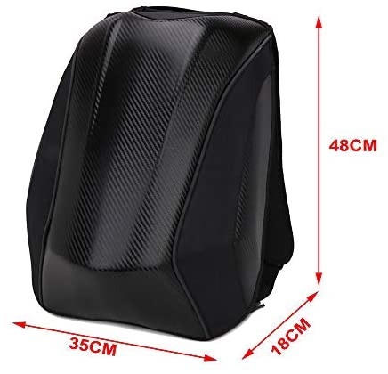 ★Product Material★ The motorcycle backpack is made of carbon fibre,PVC/1680D Oxford.Rugged, water-resistant nylon construction with reinforced Carbon fibre PVC body and lid to hold shape even when empty.High-Density weave adjustable belt, High thickness Fully adjustable and removable no slip sternum strap, suoerior quality electroplate zipper.Padded and fully adjustable riding specific shoulder straps with quick release exit buckle. Concealed handle. Helmet Hang Buckle.