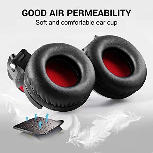 OneOdio Over Ear Headphone, Wired Bass Headsets with 50mm Driver, Foldable Lightweight Headphones with Shareport and Mic for Recording Monitoring Podcast Guitar PC TV – (Red)