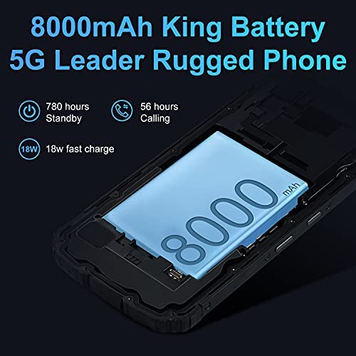 OUKITEL WP10 5G Rugged Smartphone, 2021 7nm 2GHz Dimensity CPU 8GB + 128GB 1Gbp/s Android 10 8000mAh Waterproof Unlocked Cell Phone, 6.67’’ 24001080 FHD+ 4K Record Global Quad Cameras Mobile Phone