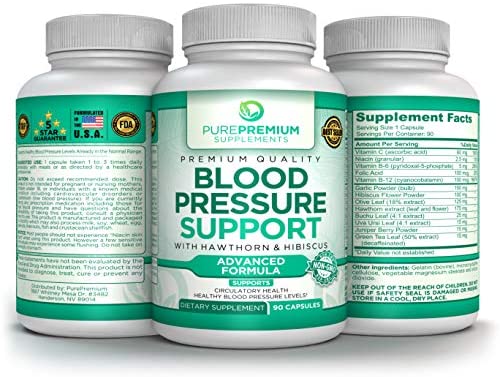 Premium Blood Pressure Support Supplement by PurePremium with Hawthorn & Hibiscus – Natural Anti-Hypertension for Cardiovascular & Circulatory Health – Vitamins & Herbs Promote Heart Health – 90 Caps