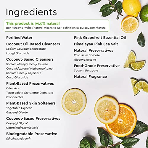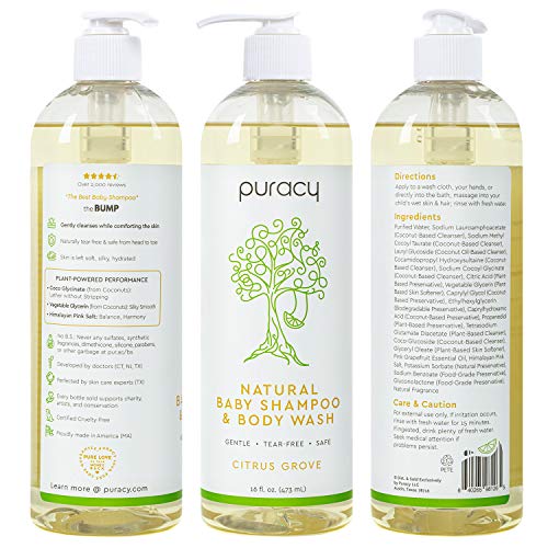 Puracy Natural Baby Shampoo & Body Wash was developed by a pediatrician, dermatologist, and Ph.D. chemist from MIT with nearly a dozen patents. The formula features a gentle blend of clinical-grade cleansers, emollients, and a dash of essential oils which are ideal for washing, bathing, and shampooing. Featuring features Coco Glycinate, an exclusive coconut-based cleanser which produces fluffy foam and leaves your child’s skin feeling soft, fresh, and moisturized. It is unique because unlike sulfates and cocamidopropyl betaine, it does not disrupt the stratum corneum layer of your skin. When you disrupt this layer, you create irritation, dryness, and redness. Our formula thoroughly cleans yet leaves this crucial layer unfazed. This helps guarantee a tear-free, squeaky clean, moisturized, and irritant-free bath time experience. This special blend of ingredients also includes Himalayan Pink Sea Salt, a natural mineral that hydrates and balances your baby’s skin. The food-grade, plant and mineral-based ingredients were carefully chosen and developed into a premium solution by Puracy, a trusted source for natural, plant-based, safe, hypoallergenic, and effective personal care and household essentials. The proprietary blend of biodegradable ingredients is family-friendly and free from harsh chemicals and fumes. This product is 99.5% Natural, per Puracy’s ‘What Natural Means to Us’ definition available on our website. As an added bonus, Puracy makes a donation to local charities for every purchase.