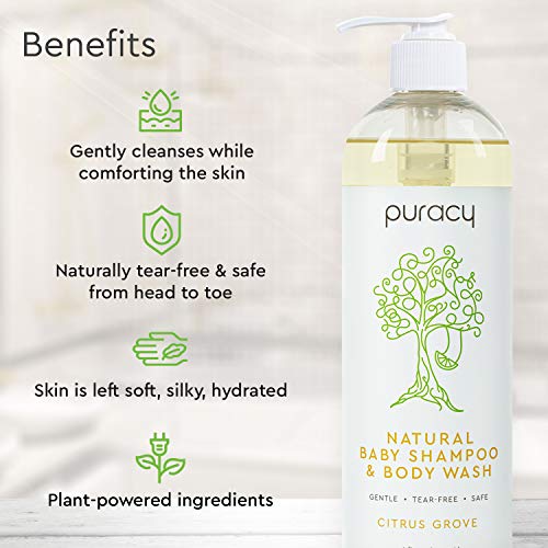 Puracy Natural Baby Shampoo & Body Wash, Plant-Derived Baby Shampoo & Baby Wash, Gentle Soap for Sensitive Skin, Tear-Free, 16 Fl Oz (2-Pack) Packaging May Vary